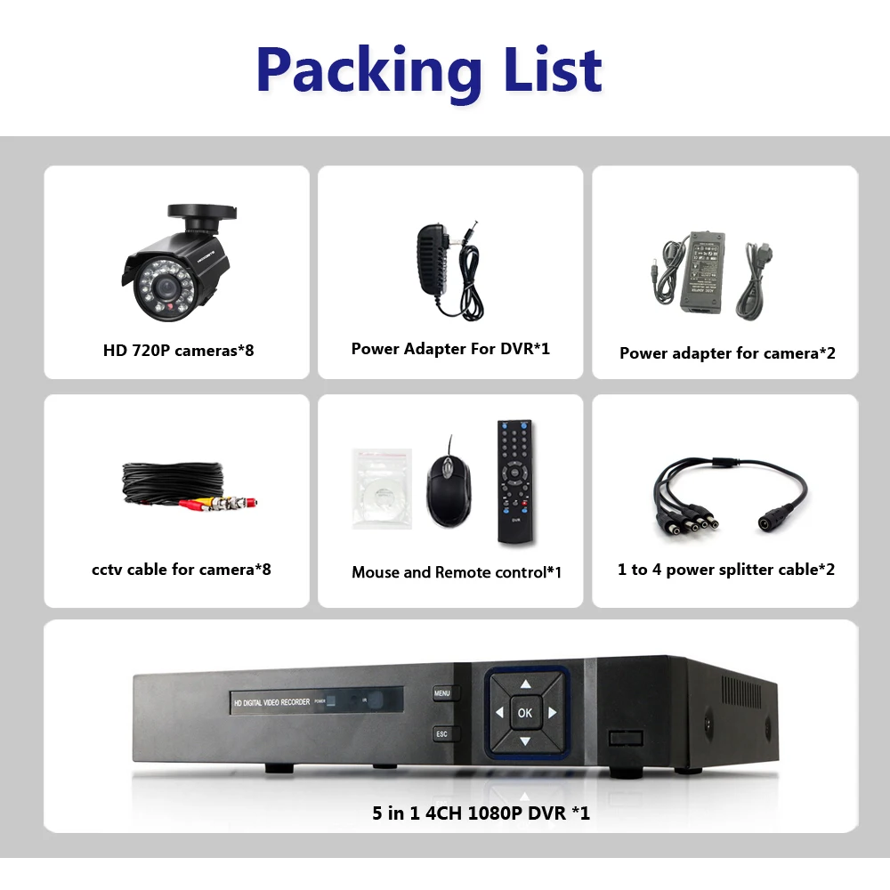 Addition Information of 8CH DVR 1080P HDMI CCTV System Video Recorder 8PCS 2000TVL Home Security Waterproof Night Vision Ca