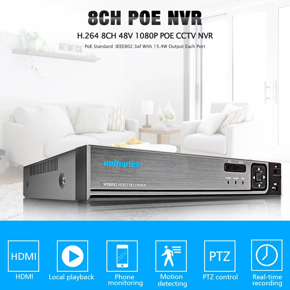 H.264 8CH CCTV NVR 48V PoE 1080P 720P Surveillance Security Video Recorder For ONVIF 2MP IP Camera