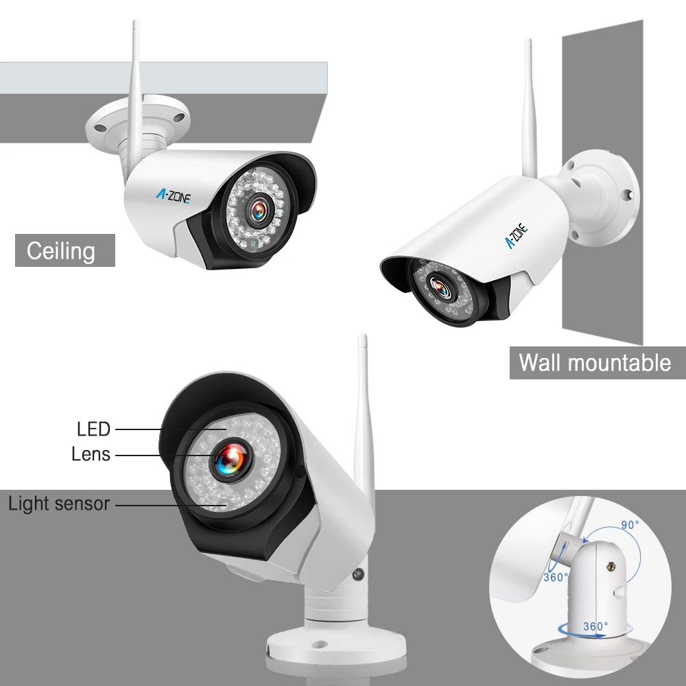 A-ZONE Wifi IP Security Camera Outdoor 2.4G 1080P 2.0MP/3.0MP HD Onvif Interco Mini CCTV Wireless Home Surveillance Video Camera