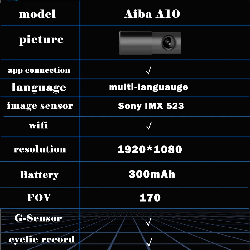 Addition Information of Aiba A10 Dash Cam Wifi APP 1080P HD Night Vision G-sensor Dashcam Video car camera Recorder 24H Par