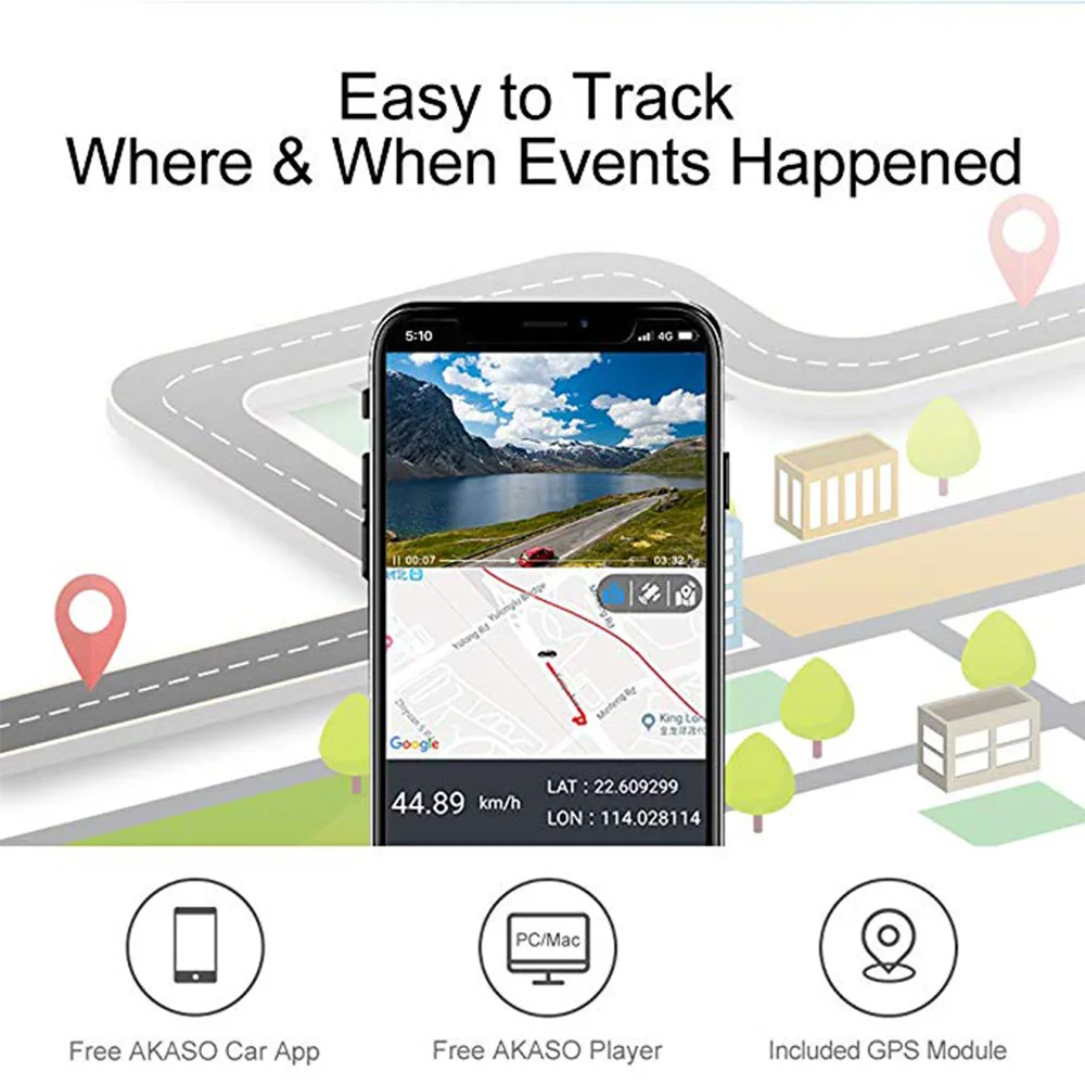 AKASO HD Car DVR Dual Lens GPS Camera Dash Cam Rear View Video Recorder Dash Cam Auto Registrator G-Sensor Car DVRs X3000 R300