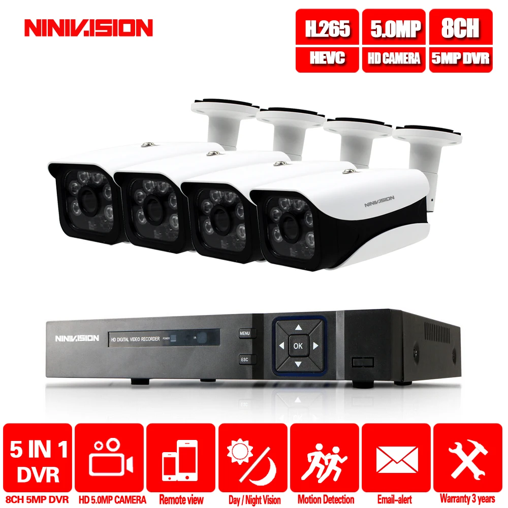 NINIVISION HD 5MP H.265 Video Surveillance 4 Cameras Security Camera Set For CCTV HD 5MP indoor Outdoor Security Camera System