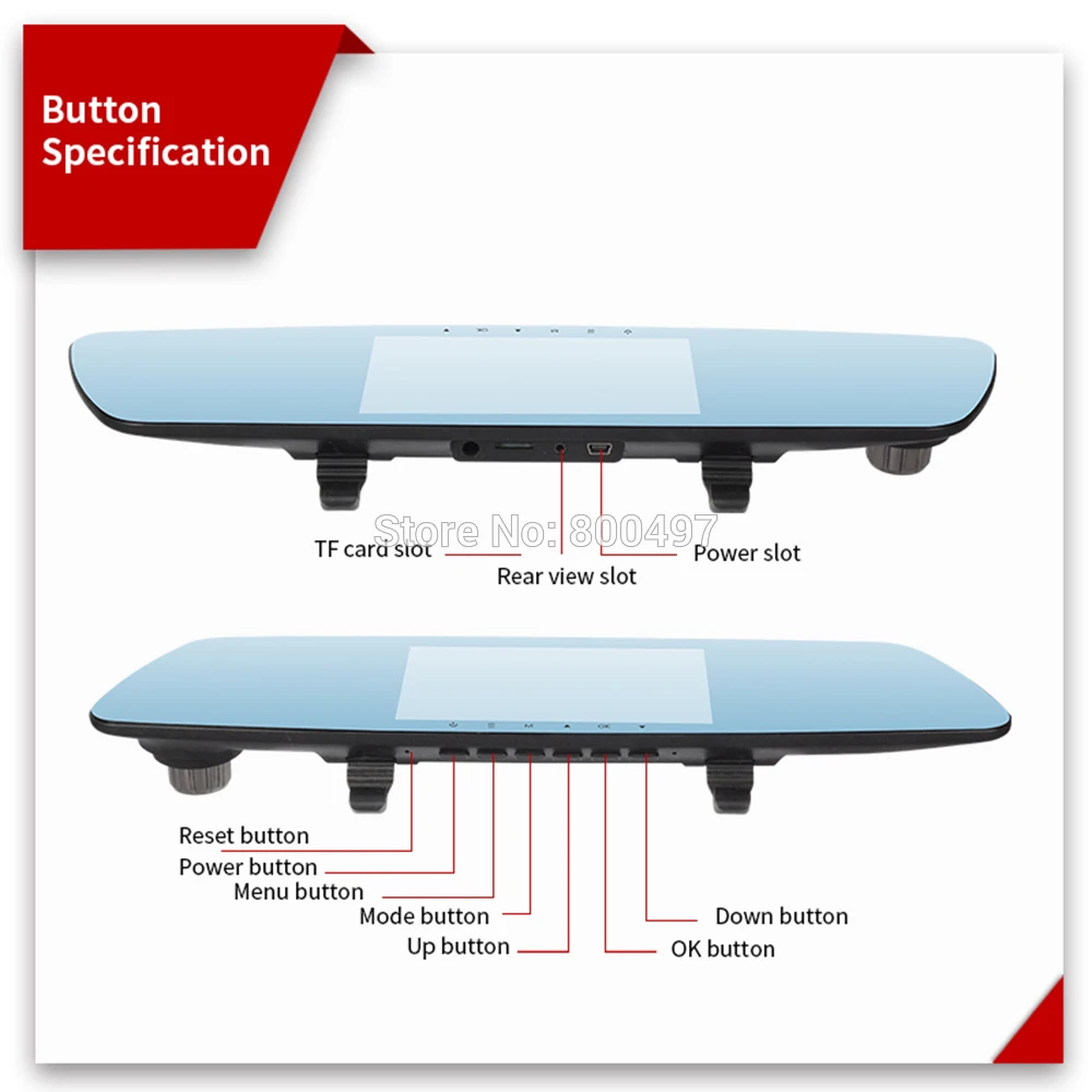 Addition Information of Car DVR HD 1080P 5" Wide Angle IPS Rear View Mirror Camera Video Recorder Dual Lens G-Sensor Parkin